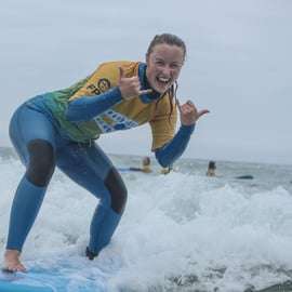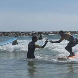 Après l'introduction sur le sable, nous partons en mer à la recherche des meilleures vagues pour vous et notre instructeur vous aidera à attraper les vagues et vous donnera des feedbacks vague après vague pour réussir et s'amuser !