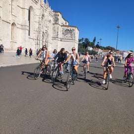 Partez à la découverte des joyaux de Lisbonne lors d'une balade à vélo inoubliable ! Pédalez le long du Tage, offrant des panoramas à couper le souffle, et admirez les monuments emblématiques de la ville : le majestueux Monastère des Jerónimos, la Tour de Belém fièrement dressée sur les eaux, le Monument aux Découvertes et bien d'autres trésors architecturaux. Une expérience unique pour explorer Lisbonne autrement !