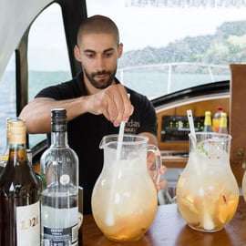 Profitez d'une croisière énergique à bord de notre bateau luxueux et extrêmement confortable, où la fête ne s'arrête jamais ! Cette expérience haut de gamme comprend un OPEN BAR avec vinho verde Casal Garcia blanc et rosé, sangria blanche, porto tonic, bière portugaise, boissons sans alcool, eau minérale et café à volonté, ainsi qu'un buffet de dégustation portugais comprenant du pão de queijo, des cacahuètes grillées, du raisin frais et l'emblématique pastel de nata, le tout dans une atmosphère animée et accueillante à bord.
