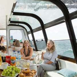 La météo n'est jamais un souci, car notre bateau peut être entièrement vitré pour assurer un maximum de confort tout en préservant les vues panoramiques, permettant à l'expérience de se poursuivre en douceur, qu'il pleuve ou qu'il vente. L'accès au port n'est autorisé que si vous êtes accompagné d'un membre de notre personnel. Veuillez noter que si le minimum de 10 participants n'est pas atteint, la visite pourra être effectuée sur un bateau plus petit, et vous en serez informé à l'avance.
