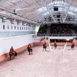 Visitez l'école portugaise d'art équestre et assistez à l'entraînement des chevaux lusitaniens et de leurs cavaliers. Pendant l'exercice du matin, vous pouvez observer l'entraînement quotidien des chevaux lusitaniens.