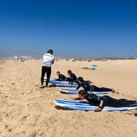 Domptez les vagues de la plage de Costa da Caparica, à deux pas de Lisbonne ! Accompagné d'un moniteur diplômé, apprenez à surfer dans une ambiance conviviale et privilégiée. Embarquez pour une expérience inoubliable au sein d'un petit groupe, pour une progression optimale et un apprentissage personnalisé.