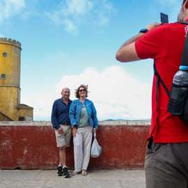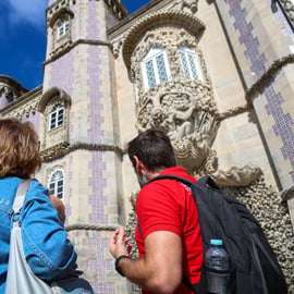 Explorez les jardins luxuriants et admirez l'extérieur éclectique et coloré de ce palais emblématique perché au sommet des collines de Sintra.
