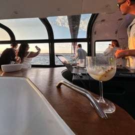 Profitez d'un coucher de soleil épique ou d'une soirée nocturne à bord d'un bateau de luxe à Lisbonne. Sirotez de la sangria à volonté, profitez de l'open bar et savourez un buffet de pizzas tout en dansant sur les morceaux joués par le DJ à bord.