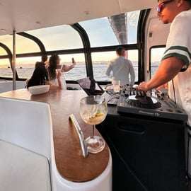 Embarquez pour un voyage électrisant à bord de notre bateau exclusif et luxueux, où le coucher du soleil se transforme en scène pour une fête inoubliable. Avec un DJ en direct, des rythmes vibrants et des vues à couper le souffle sur Lisbonne, cette croisière constitue la combinaison parfaite de divertissement, de musique et de panoramas spectaculaires.
