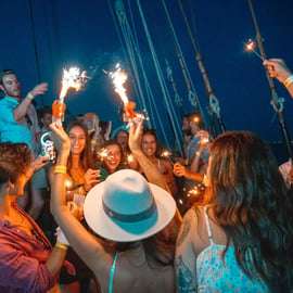 La Lisbon Boat Party est la plus grande et la plus originale des fêtes en bateau à Lisbonne. Elle existe depuis 2023 et est réputée pour sa forte demande. Nous réunissons voyageurs et habitants pour un coucher de soleil inoubliable.