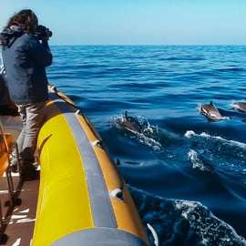 Embarquez pour une inoubliable excursion en bateau au cœur de la réserve marine du parc naturel d'Arrábida ! À la découverte des dauphins, vous naviguerez le long d'une côte époustouflante, admirant les paysages et les jeux acrobatiques de ces mammifères marins dans leur environnement naturel.