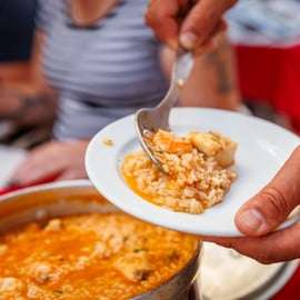 Dans un lieu authentique, loin des sentiers battus, dégustez un chouriço savoureux, accompagné de pain portugais traditionnel et d’autres produits locaux, le tout sublimé par un verre de vin rouge généreux. Enfin, régalez-vous d’un plat de riz portugais traditionnel, préparé chaque jour avec des ingrédients frais et soigneusement marié à un vin sélectionné pour une harmonie parfaite.