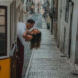 Ne vous préoccupez pas des poses : je vous guide à travers les mouvements. Cela fonctionne comme la réalisation d'une scène de film : vous pouvez vous étreindre, courir, tourner, danser, rire et, surtout, vous amuser. Chaque personne a une façon unique de bouger, et cette technique respecte votre naturel, créant des photos vraiment spéciales. Vous vivez l'instant, et j'en enregistre chaque détail, créant des images réelles qui reflètent qui vous êtes vraiment, et le meilleur, avec Lisbonne en toile de fond.
