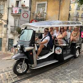 Préparez-vous à tomber amoureux de Lisbonne en explorant ses rues charmantes dans l'un de nos tuk-tuks électriques - une façon passionnante, amusante et durable de découvrir la ville !