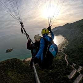 Découvrez les sensations du parapente, la façon la plus simple et la plus excitante de voler, et goûtez à la joie de voler au-dessus de la plage de Bicas, près de Meco, Fonte da Telha, dans la magnifique Serra da Arrábida ou dans la ville de Sesimbra. D'autres endroits proches de Lisbonne tels que Santa Cruz -Torres Vedras et Arruda dos Vinhos. Le vol en tandem est un type d'expérience de parapente où le passager est accompagné d'un instructeur certifié qui guide le parapente, permettant au passager de profiter de la sensation excitante de voler sans avoir besoin d'une formation préalable. Venez survoler les magnifiques paysages de la côte portugaise d'un point de vue unique dans le ciel. Nous croyons en la diffusion du parapente en offrant une expérience unique de vol en tandem avec un instructeur expert. Aucune expérience préalable n'est requise. Après un bref briefing, l'étape suivante consiste à vérifier l'équipement et à se diriger vers le vent jusqu'à ce que le parapente nous soulève dans les airs. Pendant que nous restons en altitude, nous profitons de la force du vent qui est poussé vers le haut par la forme de la colline et les bulles d'air chaud qui s'élèvent, connues sous le nom de thermiques. Selon les jours, nous pouvons profiter d'un vol en douceur à une trentaine ou une centaine de mètres au-dessus du sol, ou utiliser les thermiques robustes pour monter dans les nuages ! Le vol dure environ 30 minutes. Pendant le vol, nous pouvons effectuer des manœuvres acrobatiques radicales ou simplement profiter calmement des vues magnifiques. Quel que soit le choix du passager, plus ou moins d'adrénaline, la sécurité est toujours garantie. Notre pilote est spécialisé dans les vols en parapente avec des ailes acrobatiques extrêmement rapides et maniables. Il participe au développement et au test de nouveaux équipements pour une marque renommée utilisée par des milliers de pilotes dans le monde entier. Avec plus de 2000 vols en parapente biplace effectués et des centaines de milliers de passagers transportés en tant que commandant de ligne, notre pilote a commencé sa carrière dans l'armée de l'air où, pendant 14 ans, il a notamment piloté des chasseurs F-16. Alors pourquoi attendre ? Rejoignez-nous et vivez cette expérience inoubliable. Pour rendre cette expérience inoubliable, nous prenons des photos et des vidéos de haute qualité à l'aide d'une GoPro 11. La vidéo sera disponible en qualité 5k via un lien vers le nuage GoPro et sera toujours disponible pour un visionnage en streaming ou en téléchargement. Le passager peut également prendre son téléphone ou son appareil photo pour prendre des vidéos et des photos pendant l'expérience de parapente.
